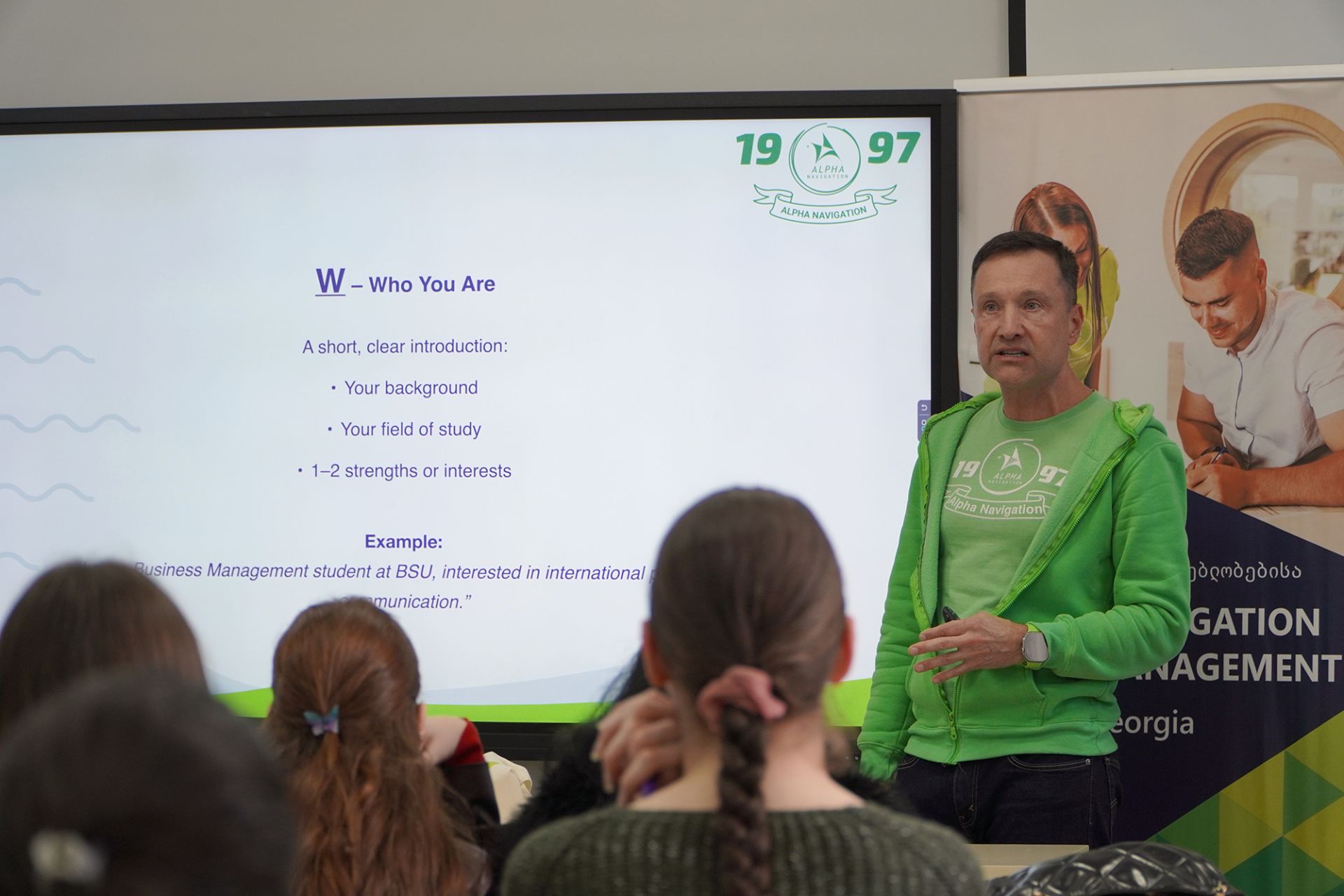 On March 20, Alpha Navigation continued its long-standing commitment to engaging with young talent through an in-person session at Batumi Shota Rustaveli State University. The company’s Founder and President, Bogdan Zelenski, met with students from various faculties to share insights into professional growth, leadership, and the demands of today’s global job market.